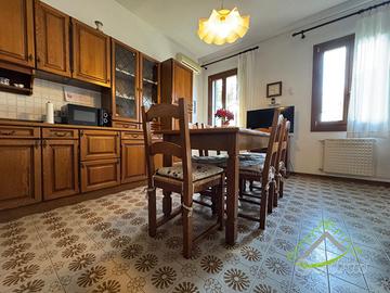 ORIAGO: casa singola, sviluppata ai piani terra e primo, con giardino privato di ca. 300 mq. Si pregia della generosità degli spazi abitativi e dell'ottima esposizione solare. La zona giorno, esposta a sud, si compone di un ampio soggiorno, di una cucina abitabile di ca. 18 mq e di un'ulteriore stanza. Le camere da letto sono di ca. 18 mq. Dotata di serramenti in pvc con doppia camera, scuri esterni in legno, due condizionatori con pompa di calore. Garage e portico esterno al piano terra. Situata in tranquilla zona residenziale, a ca. 1,5 km dal centro del paese.