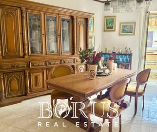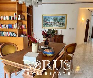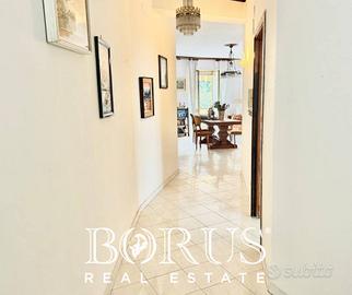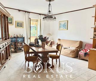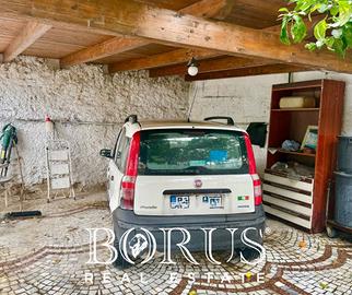 Limmobile è accessibile tramite passaggio carrabile e pedonale. Lo spazio esterno esclusivo è caratterizzato dalla presenza di pavimentazione in sanpietrini e di verde. La tettoia consente di parcheggiare una vettura al coperto mentre il box di porla in una superficie chiusa. Lappartamento di 110 mq è accessibile tramite scale interne e dispone di ingresso su corridoio (8,83 mq), salone (27,23 mq), sala pranzo (20,03 mq), un secondo corridoio (4,37 mq), due camere da letto (18,24 mq; 15,60 mq), di cui una con guardaroba (5,70 mq). Tramite la sala pranzo è possibile accedere alla comodissima veranda (17,37 mq) ed ad uno dei balconi (4,63 mq). Il secondo balcone è di 7,28 mq. APE = G. Richiesta di euro 170.000,00