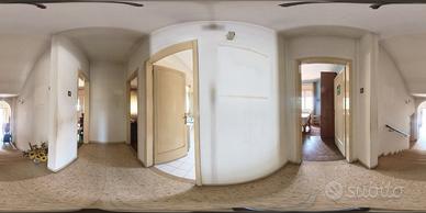 L'immobile, degli anni '50, è composto da un ampio ingresso che ci porta alla zona giorno dove troviamo cucina e soggiorno separati per un totale di 42.68 mq, un bagno di servizio e un ulteriore camera-ripostiglio. Tramite un'ampia scalinata si accede alla zona notte con due camere doppie rispettivamente di 12.62 mq e 13.20 mq, una matrimoniale di 15.46 mq con terrazzo privato e bagno finestrato con doccia di 5.13 mq.