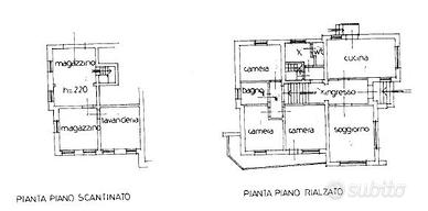 A completare l'abitazione al piano seminterrato vi è cantina di 14.24 mq, lavanderia di 14,4 mq e magazzino di circa 25 mq.