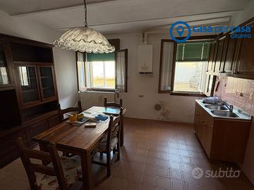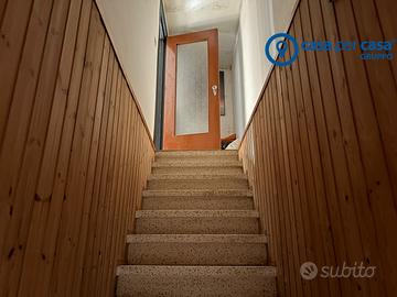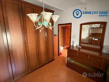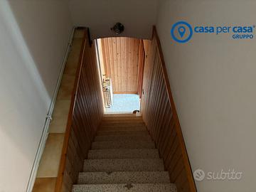 - Si tratta di una casa accostata, disposta su due livelli, libera su due lati, con un piccolo scoperto di proprietà fronte strada e un ampio garage.
