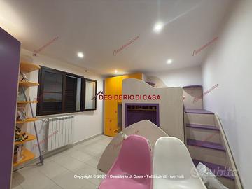 Gli interni sono organizzati in modo funzionale e accogliente: l'ingresso con porta blindata conduce alla zona giorno composta da una moderna cucina con area living e un salotto separato. La zona notte ospita due camere da letto matrimoniali, una cameretta, un comodo ripostiglio e due bagni finestrati, entrambi con doccia.