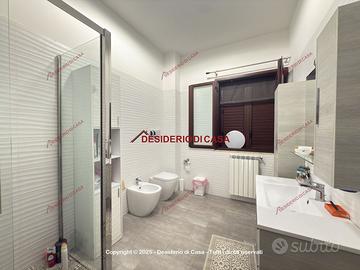 Gli interni sono organizzati in modo funzionale e accogliente: l'ingresso con porta blindata conduce alla zona giorno composta da una moderna cucina con area living e un salotto separato. La zona notte ospita due camere da letto matrimoniali, una cameretta, un comodo ripostiglio e due bagni finestrati, entrambi con doccia.