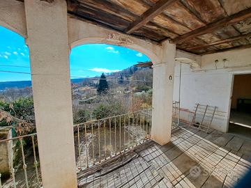La proprietà, completamente recintata, è fornita di due accessi pedonali, uno sul lato sud ovest e uno sul lato est. L'abitazione caratterizzata, in ognuno dei 3 piani, da antichi archi che racchiudono portici e terrazzi panoramici ed esposti a sud, ha una superficie di 90 mq per piano, per un totale di 270mq. Il terreno circostante, in piano, è di circa 200 mq, a cui si aggiungono ulteriori 100 mq circa, che si trovano sul lato sud oltre il sentiero di accesso.
