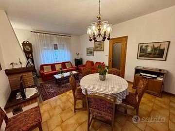 L'ingresso avviene dal portico al piano terra, che introduce in un accogliente soggiorno con caminetto, la cucina è abitabile, funzionale e ben collegata agli spazi esterni, completata da un bagno, dalla centrale termica e da un comodo ripostiglio. Completano il piano un garage e un ampio deposito attrezzi di circa 95 mq, perfetto per chi necessita di spazi accessori generosi.