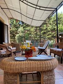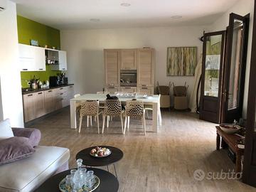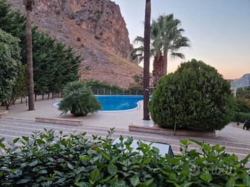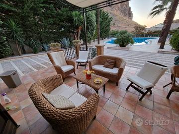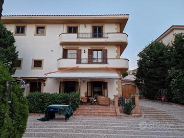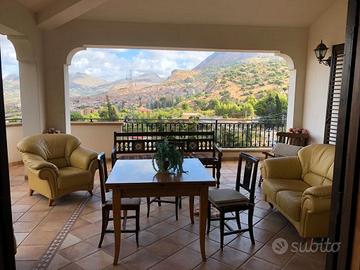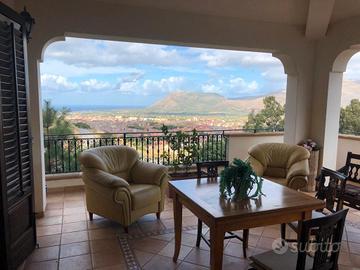 Progetto casa propone in vendita a Partinico in C. da Ramo una lussuosa villa (porzione di villa bifamiliare divisa orizzontalmente) su lotto di 3000 mq con piscina composta da: piano terra terrazzo coperto antistante di 45 mq, dal quale si accede all'ampia cucina soggiorno (mq 47), camera e wc con doccia, attraverso la scala interna accediamo al secondo piano composto da un salone, soggiorno con attiguo cucinotto con angolo cottura in muratura con esposizone su terrazzo coperto con splendida vista mare, 5 camere di cui una con cabina armadio, 2 wc con doccia e uno con vasca con rivestimento in travertino grezzo, corrisoio di disimpegno, 2 balconi che girano sui quattro lati della villa e un terrazzo coperto 33. , magazzino di 105 al piano terra in ottimo stato. La villa è stata ristrutturato totalmente con rifiniture di pregio, con pavimentazione in gres porcellanato effetto parquet al piano terra e ceramica decorata a mano al secondo piano, porte interne in legno massello, infissi in legno con vetro camera, persiane in legno, impianto elettrico a norma, impianto idrico in multistrato con collettori, impianto fotovoltaico di 20 KW che da un utile di 1200 euro mensili oltre gli incentivi del GSE (contratto stipulato nel 2010 per 20 anni), quadrupla esposizione con splendida vista mare e montagna. Lo spazio esterno è ben curato con prato all'inglese dove troviamo alberi e piante ornamentali, piscina con ampia zona solarium. La villa può essere abitata da due famiglie, può essere utilizzata anche per uso investimento tutta o in parte realizzando un B&B, oppure grazie alla sua location e alla splendida distribuzione interna e dello spazio esterno potrebbe essere utilizza per l'organizzazione di eventi (banchetti, congressi, sfilate di mode ecc).