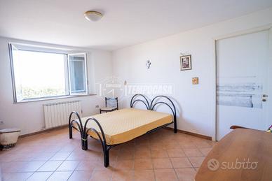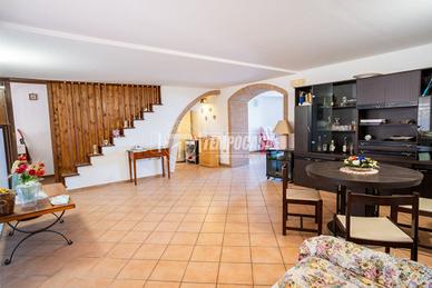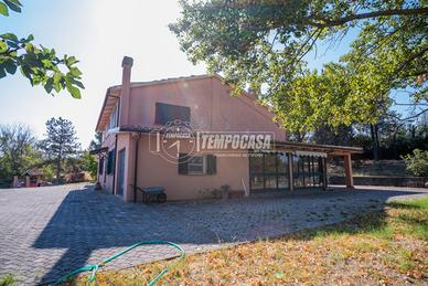 A completare l'immobile troviamo uno splendido porticato con infissi in alluminio a vetro singolo (33 mq), una mansarda (60mq), un garage (17 mq) ed infine un terreno di circa 5000 mq recintati!