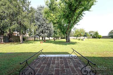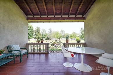 Al piano terra, un ampio ingresso scenografico introduce agli ambienti della zona giorno: una sala da pranzo con camino e un accogliente salotto, anch'esso impreziosito da un camino in stile rustico-elegante. La cucina abitabile, pensata per momenti conviviali, si apre su una loggia coperta con vista sul parco. Completa il piano un bagno di servizio.