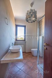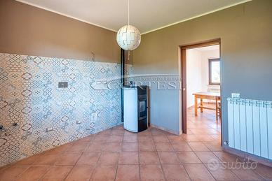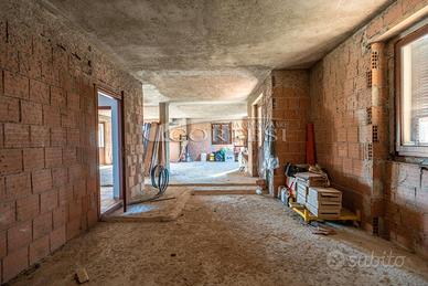 La proprietà si sviluppa su due livelli. Il piano inferiore, attualmente al grezzo, offre ampi spazi versatili che possono essere personalizzati secondo le proprie esigenze: ideale per creare una taverna accogliente, una zona benessere, locali tecnici o una dependance per ospiti. Al piano superiore, già completamente abitabile e rifinito con cura, si trovano un elegante ingresso, un luminoso soggiorno con camino, una cucina abitabile, tre camere da letto (con possibilità di adibire una stanza a studio), due bagni e una comoda lavanderia.