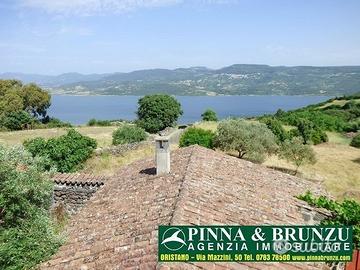se anche tu vuoi vendere un immobile simile rivolgiti a noi. SODDI - Casa tipica in pietra con stupenda vista panoramica sul lago Omodeo La proprietà consiste in una casa padronale dei primi del 900 circondata da diverse costruzioni rurali e da un vasto terreno agricolo. Si trova in un piccolo borgo (Soddi') affacciato sul lago Omodeo che dista dalla casa meno di 1km in linea d'aria. A 3km si trova lo svincolo da cui ci si immette nella SS 131 che collega Cagliari con Sassari e con Olbia, mentre in circa mezz'ora si arriva alle bellissime spiagge della costa occidentale e in circa un'ora a quelle della costa orientale. L'aeroporto di Cagliari dista circa un'ora di auto. La casa ha un'estensione di circa 240 m2 totali: al piano terreno si trova un atrio, un salotto, un ampio soggiorno con grande camino, cucina, bagno e due spaziose camere; al primo piano un grande disimpegno e due grandi camere 3 da cui si gode una splendida vista sul lago. Dal piano terreno, attraverso due scalette gemelle, si accede al cortile ombreggiato da due alberi di agrumi. Sul cortile da' anche una cucina rustica detta "la casa del forno". Dalla parte sinistra del cortile si accede alle stalle usate una volta per il ricovero di cavalli, mucche ecc, mentre dalla parte destra si accede ad un grande cortile su cui si affacciano altre costruzioni servite in passato da ricoveri per animali da cortile e per lo stoccaggio di vino, olio, granaglie e altre provviste. Sempre dal cortile centrale si accede ad un appezzamento di terreno che si affaccia sul lago, in parte adibito a coltivazioni e su cui crescono diversi alberi da frutto ( aranci, limoni, mandaranci, albicocco, fichi, kaki, melograni e diversi ulivi) Tutta la proprietà ha un'area di circa 2200 m2. N. B. - Per il sopralluogo presso questo immobile è richiesto un rimborso spese di 40 euro, che saranno rimborsati in caso di acquisto dell'immobile.