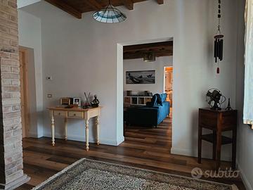 Vendo da privato...Casale ristrutturato nel 2023 di mq 160 piano terra e primo piano. Ingresso con scala a vista in travertino, soggiorno con stufa a legna, grande cucina abitabile, lavanderia con doccia da 140 cm, wc, bidet, lavabo e sgabuzzino. Primo piano: bagno con vasca centro camera, doccia cm 140 wc, bidet, lavabo e spazio per una sauna, disimpegno, studio, cameretta, camera matrimoniale, il tutto con travi a vista originali. Tetto doppio isolamento, serramenti ultima generazione PVC con vasistas, porte interne in legno rustico, riscaldamento a pavimento con termostato in tutte in tutti gli ambienti, parquet in tutta la casa compreso i bagni. Colonna mattoni a vista, climatizzatore tre split zona giorno e camere, portoncino ingresso blindato in rovere, porticato lungo tutto la facciatta, cantina a volte mattoni a vista adibito a locale tecnico con caldaia e addolcitore, in aggiunta uno scaldabagno in pompa di valore. All'esterno troviamo un giardino di 600 mq con impianto di irrigazione, in più c'è una zona ad uso orto 50 mq, fienile di 75 mq, garage doppio , magazzino, legnaia, ecc. Stradina bianca di proprietà. Telecamere esterne. Per altre foto contattami che ve le invio