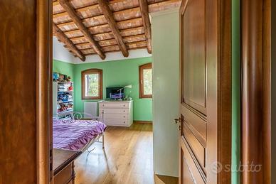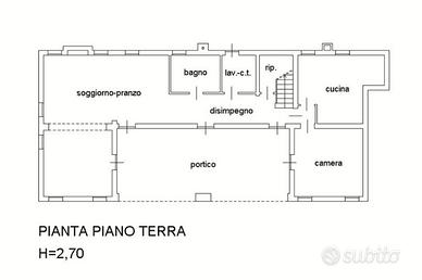 Situata nella quiete della campagna ma anche comoda a tutti i servizi, la casa è disposta su due piani, al piano terra abbiamo un ampio portico padronale di oltre 40 mq ideale per la stagione estiva e pranzi all'aperto, entriamo nell'ingresso dove troviamo un grande soggiorno pranzo con termo camino, la cucina abitabile, un tinello-pranzo, un bagno, una comoda lavanderia ed un ripostiglio sottoscala.