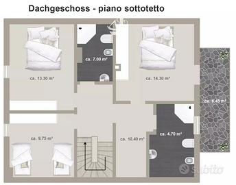 Rf.Nr: J128-2 In vendita proponiamo un'interessante soluzione composta da due case indipendenti a San Maurizio che si trovano già nel Comune di Terlano, in una posizione particolarmente apprezzata per la sua vicinanza a Bolzano. Il complesso è proposto al prezzo complessivo di € 2.600.000 e dispone di una cubatura di circa 2.000 m³, offrendo interessanti possibilità di sviluppo. Si tratta di: - una casa indipendente costruita nel 1976, con una superficie commerciale di 401,00 m² e una superficie netta di 185,10 m² - una casa indipendente realizzata nel 2002, con una superficie commerciale di 247,00 m² e una superficie netta di 138,41 m² Le due unità possono essere acquistate sia congiuntamente sia separatamente, rappresentando una soluzione ideale sia per uso abitativo che come investimento. Riscaldamento: autonomo a gas Poiché l'immobile non è convenzionato, si presta idealmente anche come seconda casa o appartamento per le vacanze, offrendo la massima flessibilità di utilizzo. Al fine di tutelare la privacy, precisiamo che gli indirizzi presenti negli annunci sono puramente indicativi. Per visionare l'immobile o ricevere ulteriori informazioni siamo a disposizione! Questo immobile in vendita viene proposto dall'agenzia immobiliare HOME IMMOBILIARE. Siamo specializzati nella compravendita d'immobili in tutto l'Alto Adige, i nostri punti di forza sono soprattutto la trasparenza e la professionalità. Inoltre, accompagniamo ogni cliente dalla proposta d'acquisto fino all'atto notarile. Siamo inoltre lieti di valutare la Vostra proprietà gratuitamente, in modo che tu sappia esattamente quale prezzo puoi ottenere.