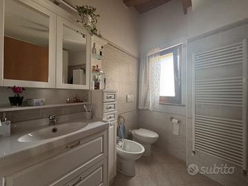 La casa, che da visura ha una superficie di circa 105 mq, è dotata di split per l'aria condizionata e della predisposizione di un impianto solare termico per la produzione di acqua calda, elementi che contribuiscono a mantenere bassi i consumi energetici e garantiscono una buona efficienza, classificata in classe B.