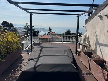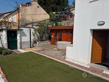 Via Romagna alta, splendida casetta pari primo ingresso, su due livelli composta da: ingresso, ripostiglio-vano caldaia, ampia zona giorno, soggiorno ( trasformabile in terza camera), cameretta bagno , al piano superiore, ampia camera matrimoniale con cabina armadio e bagno, giardino privato, vano esterno adibito a sauna, terrazza vista mare con vasca Idro massaggio . Riscaldamento autonomo con pompa di calore, impianto fotovoltaico. Possibilità di acquistare un posto auto limitrofe alla casa .