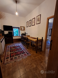 l'immobile è dotato di ampia corte circondata da alberi, recintata , parcheggio auto dedicato. Composto da cucina piu' vano, sala da pranzo, sala TV-DTT / musica, due camere da letto (Matrimoniale e l'altra con 3 letti), ampio bagno con doccia,tutte le finestre sono dotate di zanzariere, terrazzo d'ingresso arredato, dove sono immancabili pranzo e cena quotidiana nelle stagioni miti. L'immobile è arredato con mobili restaurati tipici, lavatrice, non presente aria condizionata e linea telefonica, ottima ricezione smartphone . Presente una zona relax pavimentata in legno affacciata sull'immenso panorama per aperitivi, arredato e solarium, con doccia c/f. dove si possono ammirare stupendi tramonti. Barbecue in muratura.