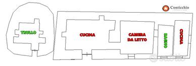 ?Casolare: ambiente unico con cucina, camera da letto e bagno.