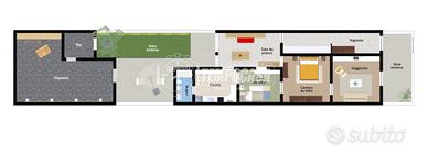 Un punto di forza della casa è sicuramente il giardino retrostante, che regala un angolo di tranquillità all'aperto, perfetto per momenti di relax o per chi desidera un po' di verde in più. Inoltre, il terrazzo è un altro spazio che permette di godere della vista e dell'aria aperta in tutta privacy.