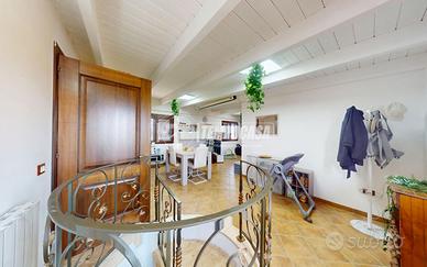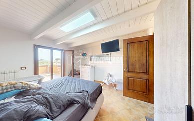 Al piano superiore, una mansarda vivibile accoglie un grande ambiente open space, una camera da letto, un bagno, un ripostiglio e una verandina a livello accessibile direttamente dalla camera, perfetta per godersi momenti di relax o una colazione all'aperto.