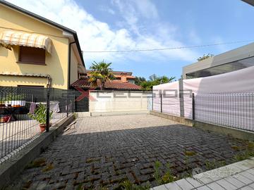 Completa la proprietà giardino piantumato, cortile e posto auto scoperto.
