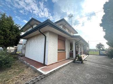 NUOVA ESCLUSIVA - VENDESI IN LOC. SAN GAETANO DI CAVARZERE CASA SINGOLA SU DUE PIANI CON SCOPERTO ESCLUSIVO DI 5.000 MQ, COSI' COMPOSTA: INGRESSO, CUCININO, SOGGIORNO, SALOTTO, LAVANDERIA, CAMERA DA LETTO, BAGNO, DISIMPEGNO E PORTICATO AL PIANO TERRA; TRE CAMERE DA LETTO MATRIMONIALI, RIPOSTIGLIO, BAGNO, DISIMPEGNO E AMPIO TERRAZZO AL PRIMO PIANO. COMPLETANO LA PROPRIETA' IL GARAGE TRIPLO E UN MAGAZZINO DI 200 MQ.