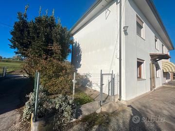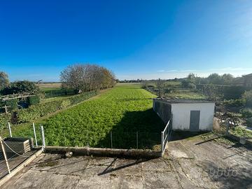 PROPONIAMO IN VENDITA IN ESCLUSIVA A CAVARZERE, IN ZONA COMODISSIMA AL CENTRO ED AI SERVIZI, UNA PORZIONE DI BIFAMILIARE CON GARAGE IN CORPO STACCATO COSI' COMPOSTA: INGRESSO SUL SOGGIORNO, CUCINOTTO, RIPOSTIGLIO NEL SOTTOSCALA E SALOTTO AL PIANO TERRA; DISIMPEGNO, DUE CAMERE MATRIMONIALI E BAGNO CON VASCA AL PRIMO PIANO. COMPLETA LA PROPRIETA' AMPIO SCOPERTO ESCLUSIVO IN PARTE EDIFICABILE DI CIRCA MQ. 2.000.