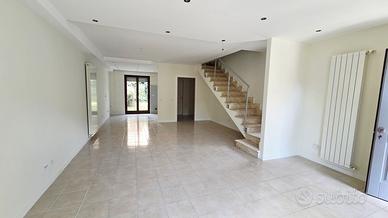 Cave, via Giulio Rinaldi, Lo Spazio Immobiliare di Daniele Ercoli propone in vendita una bellissima villa a schiera angolare di recente costruzione con giardino e così composta: piano terra da cucina semi abitabile, ampio soggiorno con camino, due ripostigli, bagno e antibagno, primo piano da tre camere da letto, un armadio armadio a muro, due ampi bagni e balconi, piano mansarda una camera open space con terrazzo.