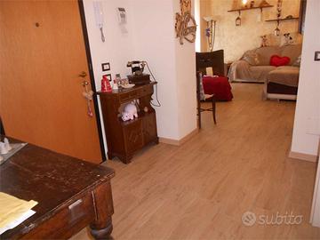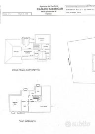 Scala interna che porta al piano primo con ingresso indipendente, soggiorno con cucina a vista e terrazzo di 25 Mq, corridoio, camera matrimoniale, cameretta e bagno con doccia. Soffitto con travi a vista altezza max 2,70 e min 1,60.