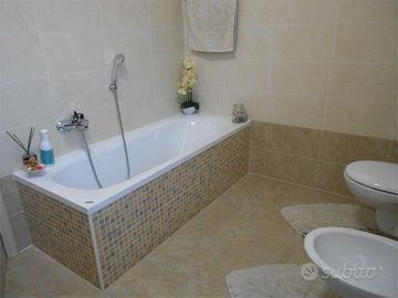 Al piano rialzato ingresso, corridoio, cucina abitabile con accesso al giardino, ampio e luminoso salone con accesso al giardino, bagno di servizio, camera matrimoniale con cabina armadio e bagno riservato con doccia, bagno padronale con vasca e due camerette singole.