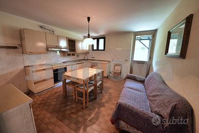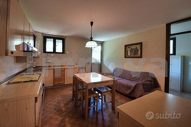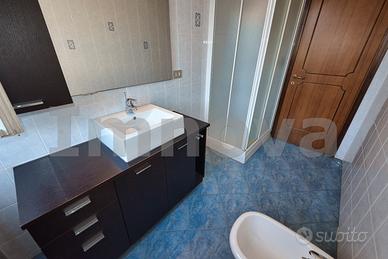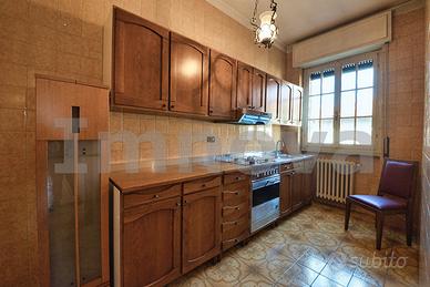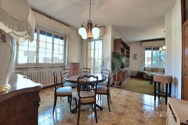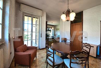 L' immobile è disposto su tre livelli ed è composto al piano terra per una metratura di 75 mq circa da due vani adibiti ad oggi a soggiorno con angolo cottura, camera da letto e bagno finestrato oltre ampio box servito di doppio ingresso sulla parte anteriore e posteriore della proprietà. Al primo piano si sviluppa l' appartamento di circa 105 mq con doppio soggiorno, cucina abitabile, disimpegno che conduce alle due camera matrimoniali e al bagno recentemente ristrutturato.
