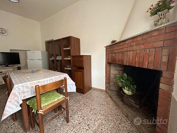 Il piano terra è costituito da un soggiorno, una cucina dotata di camino e veranda collegata al cortile, un disimpegno, due camere, un bagno.