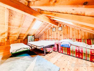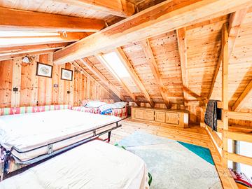 L' abitazione, di circa 85 mq, si dispone su due livelli rendendo lo Chalet molto accogliente, con il piano terra direttamente collegato agli ampi spazi esterni con bellissime viste panoramiche sul gruppo dell'Adamello-Carè Alto e sulle montagne circostanti. Location tranquilla, ideale per gli amanti della montagna, ottima privacy. Dall'ingresso si accede direttamente alla zona giorno, dove si trova il soggiorno, con una bella stufa e l'ampio divano della zona convesazione , fanno poi seguito un'ampia zona pranzo adiacente all' angolo cucina, dotata quest'ultima anche di stufa a legna. Un disbrigo porta poi al bagno wc/doccia. Dalla zona soggiorno una scalinata in legno conduce poi al piano soppalco che ospita la zona notte formata da un ampio locale open-space attrezzato per 6 posti letto. Volendo si può dividere questa zona creando 2 camere indipendenti.