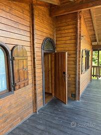 Vendo chalet completamente di legno su base di muratura e pietra. composto da camera matrimoniale, cameretta con letto a castello 3 posti , corridoio, bagnetto con doccia e lavabo e wc , cucina e ampio soggiorno con camino a legna perfettamente funzionante.
