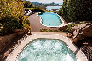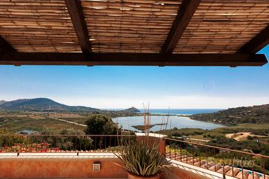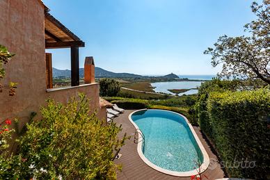 Cagliari-Case Vi propone una lussuosa villa ubicata in posizione panoramica ed esclusiva, circondata su 4 lati da un riservato e curato giardino con idromassaggio, piscina a sfioro, ed imponente terrazza a livello con vista sulla torre di Chia. Il piano terra è composto da: un ampio soggiorno con camino, cucina abitabile, bagno per gli ospiti, camera da letto con bagno privato, ed una zona lavatoio/cantina. Al piano primo troviamo la zona notte composta da: 2 ampie camere da letto e uno studio che si affacciano sulla panoramica terrazza a livello, 2 bagni completi. Superficie calpestabile: 200 mq Rifiniture di pregio Termocondizionato A 2 minuti di macchina dalle migliori spiagge di Chia RIF MS/RR206