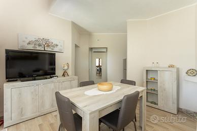 Situata in una posizione panoramica privilegiata, la villetta, recentemente ristrutturata, si presenta con uno stile caldo e accogliente, rifinito con materiali naturali e dettagli curati. Gli interni luminosi, dai toni neutri e rilassanti, trasmettono un senso di serenità assoluta. La zona giorno, ariosa e ben organizzata, si apre direttamente su un'area esterna attrezzata con tavolo e ombrellone: il luogo perfetto per cene al tramonto o colazioni vista mare.