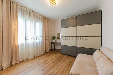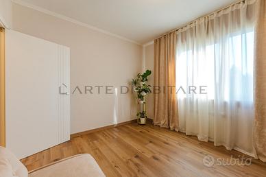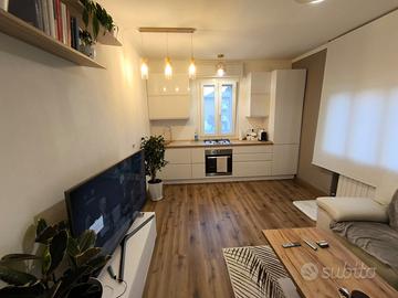 In posizione comodissima a mezzi e servizi ma su strada poco trafficata proponiamo porzione di trifamiliare recentemente ristrutturata con 2 camere matrimoniali. La casa si sviluppa principalmente al piano primo con vano scala di proprietà ed accesso al piano terra dove troviamo spazio utile per armadiatura ed elettrodomestici. Al piano primo l'abitazione si compone di zona giorno open-space, due camere matrimoniali ed un comodo bagno completamente rifatto. Soluzione completamente ristrutturata nel 2025 con interventi che comprendono: impiantistica, bagno, pavimenti e cappotto interno localizzato. A completare il magazzino esterno e lo scoperto comune.