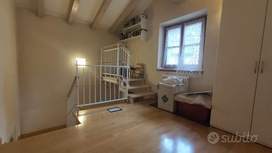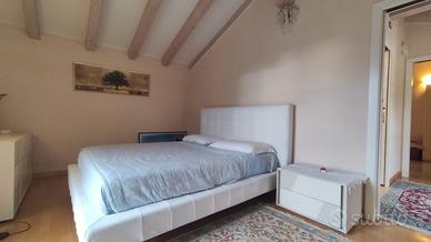 Dalla zona giorno si sale la scala a vista verso il piano superiore, una ampia zona notte mansardata; ci accoglie uno spazio aperto adibito a studio o soggiorno/notte. Troviamo poi un balcone rivolto ad est, un elegante bagno finestrato con velux (dotato di box doccia e vasca idromassaggio), e la grande stanza da letto matrimoniale con un bellissimo balcone rivolto a sud dal quale si gode di uno spettacolare panorama!