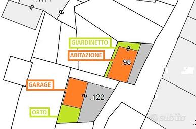 A lato della casa, un garage doppio di 40 mq lordi con basculante elettrico e accesso pedonale, con antistante piazzale permette un comodo spazio di parcheggio, e adiacente troviamo anche un piccolo orto recintato