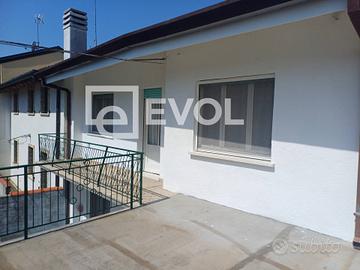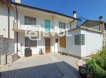 Vi proponiamo a Porpetto una casa terra-cielo sviluppata su due livelli e dotata di una corte di proprietà da cui si accede tramite un comodo porticato. Si presenta nel modo seguente: