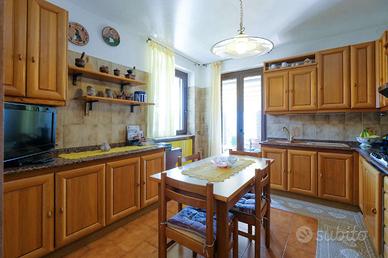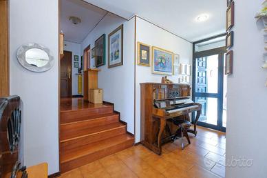 scala interna per accedere al piano terra dove troviamo un ampio locale a taverna, intercapedine, disimpegno, locali pluriuso, lavanderia e locale caldaia. Giardino rimanente di circa 500 mq tutto intorno alla villa: giardino di rappresentanza sul fronte dell'abitazione mentre sul retro si trovano vari alberi da frutto. Completa la proprietà un box triplo con basculanti elettriche.