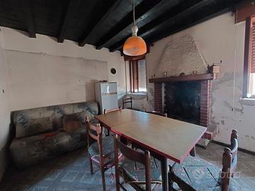 Piano terra: cucina, soggiorno con camino di generose dimensioni, bagno