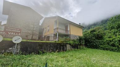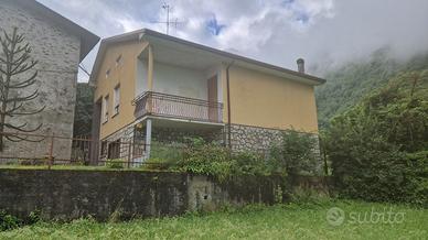 Frazione Valle, casetta indipendente su 4 lati, composta da ampio locale box e cantina a piano seminterrato, appartamento di 90 mq a piano terra, solaio.