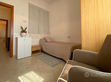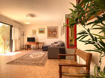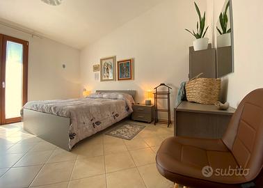 Al piano inferiore un ampio vano con bagno consente di ricavare un ulteriore bivano con affaccio nel giardino privato, perfetto per momenti di relax.