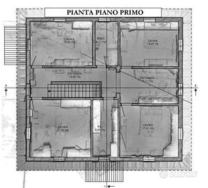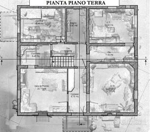 -unità abitativa costituita da piano terra con ingresso, sala da pranzo, soggiorno, cucinotto, due disimpegni, cantina di 15,46 mq, centrale termica e bagno; al piano primo troviamo quattro camere, due disimpegni, bagno e ripostiglio.