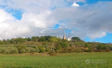 Complesso Immobiliare di circa mq 600, in splendida posizione collinare e panoramica, arricchito dalla presenza di una suggestiva chiesa sconsacrata del XVIII secolo, oggetto di un accurato intervento di consolidamento strutturale e restauro, già completato, incluso il campanile. Il resto del fabbricato si presenta attualmente in fase di ricostruzione, con opere parzialmente eseguite, tra cui l'isolamento da terra con iglù realizzato da un impresa edile qualificata. Il progetto architettonico, già approvato, prevede la possibilità di realizzare sette appartamenti da circa 45 mq ciascuno, ideali per una destinazione turistico - ricettiva, oppure due ampie unità abitative da 150 mq, perfette per uso residenziale o come struttura ricettiva di pregio, personalizzabile a seconda delle esigenze. La proprietà comprende un terreno di circa 1500 mq, suddiviso in tre aree distinte: una parte boschiva, una piantumata a ulivi e una zona più ampia e aperta, attualmente adibita a parcheggio. E' inoltre possibile la realizzazione di una piscina. Una soluzione unica nel suo genere, che coniuga storia, natura e potenzialità di sviluppo in un contesto di grande fascino.