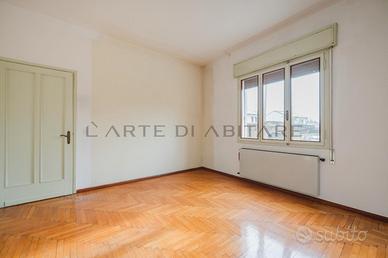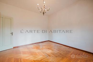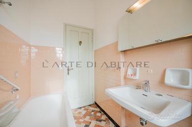 In una posizione riservata e silenziosa, ma comodissima al centro, porzione di bifamiliare al piano terra con ingresso indipendente, con scoperto privato.
