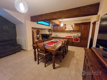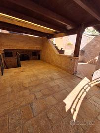 Ampia Villa unifamiliare su più livelli di circa 250mq con terrazze scoperte di proprietà. L'ingresso della villetta è composta da un ampio ingresso pedonale e ingresso posto auto copertura in legno. All'interno troviamo un ampio soggiorno, cucina con camino, antibagno e bagno. Piano primo da camera matrimoniale, 2 camere da letto, bagno e ripostiglio. Secondo piano da 2 vani pluriuso. Piano seminterrato composto da tavernetta con camino e dispensa, bagno e ripostiglio. I vari piani sono collegati da una pregiata scala protetta. Tutti i vani dispongono di ampi balconi antistante e terrazze scoperte retrostante (P.T. e 2P.) che permette di realizzare contesti più riservati.