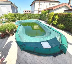 CON PISCINA INTERRATA E ATTREZZATA (22 mq.) composta da ingresso su soggiorno, cucina abitabile, 2 letto matrimoniali, 2 bagni/d. Climatizzata,pannelli solari per acqua calda. Garage, giardino privato 260 mq. ca. Classe energetica in fase di definizione. ?. RIF.