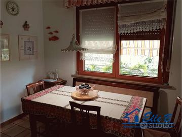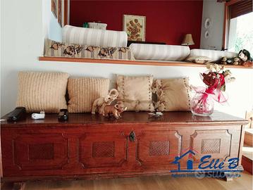 Al piano rialzato labitazione si apre su un comodo ingresso che conduce a un soggiorno elegante, disposto su piani sfalsati e suddiviso in zona pranzo e salotto con stufa in maiolica. La zona giorno si completa con una cucina abitabile e un ampio terrazzo vivibile, ideale per momenti di relax allaperto.