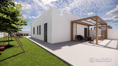 CV113 Se stai cercando una villetta spaziosa da poter personalizzare secondo le Tue esigenze in un contesto tranquillo a pochi minuti dalla città, con spazio verde a giardino e zona per piscina e barbecue. Proponiamo Villetta, in corso di approvazione di progetto . Le villette saranno Realizzate su un unico livello, per una superficie commerciale complessiva di mq. 150 circa, si compone - da : ingresso - salone - cucina, lavanderia, disimpegno, doppi servizi, riposto, tre camere di cui una con cabina armadi, oltre veranda esterna, con cisterna autonoma di mc. 10 per riserva idrica. La superficie complessiva del lotto di pertinenza della singola Villetta è di mq.500 circa, lo spazio antistante è sistemato con pavimentazione ed aiuole, mentre lo spazio laterale e retrostante da sistemare a giardino, si presta bene sia alla creazione di angolo a barbecue, piscina e sia alla tenuta di animali di compagnia. Si possono effettuare modifiche interne per adattamenti all'esigenze personali , saranno servite di tutti gli impianti di fotovoltaico, solare termico , caldaia con piastre e climatizzatori. Maggiori informazioni chiamare in agenzia.